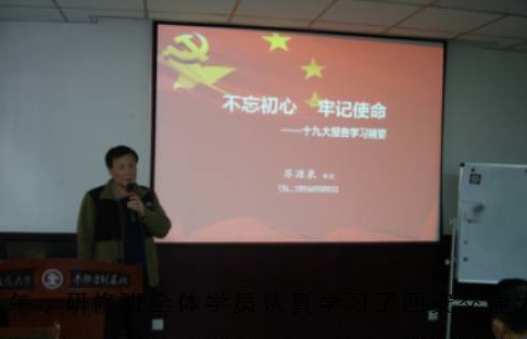 23日下午,研修班全體學(xué)員認(rèn)真學(xué)習(xí)了西安交通大學(xué)CEO\EMBA公務(wù)員培訓(xùn)課程主講教授、陜西省行政學(xué)院教授、中共陜西省委講師團(tuán)特聘教授、西北大學(xué)國際商學(xué)院兼職教授蘇源泉講授的題為《不忘初心牢記使命——十九大報(bào)告學(xué)習(xí)精要》的課程。